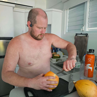 I was out in the backyard when this gentleman walked up. He was carrying a machete and clearly did not speak any english. In my very bad spanish, I asked him if he wanted the coconuts from our tree. He nodded that he did, and we got to witness him taking some of them down. I ran into the house to get him a christmas present for his family. He was kind enough to give us two coconuts cut open as a return gift. As you can see in the photographs, there are green coconuts and yellow coconuts. For my money, the yellow ones are better for straight drinking. They are sweet and magical different from anything else I've bought in the grocery store. The problem is that the inside flesh is very astringent. When you get the green ones, there is more liquid, but it is slightly less sweet. The total upside is, if you run your hand around the inside of the coconut, you can get this slimy inner layer that tastes exactly like coconut milk. I know I didn't sell that very well, but it's very delicious. Mike and I used this in so many drinks that we had over the next couple of days.