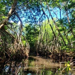 Our guide for the kayaking was really lovely. He said that he enjoyed having us because he didn't have to teach us how to sit in the kayak or hold the paddles! He told us that sometimes he has to tow people back to the dock. I have to say I'd be completely humiliated if I needed to be towed back to shore. We really got a huge bang for our buck because the guide took us on a lovely paddle in the main river and in the mangrove forest. I have to be honest, the tide on the way back was actually remarkably strong. I had to dig down and focus on paddling and not how far we had to go. Once we got back from kayaking, we were told we were able to use the entire Maya Jade resort! This is a lovely resort in El Hawaii, a town 45 minutes from our hotel. It was lovely because they had 3 pools and an enormous black sand beach. Of course, I headed right for the hammocks to take a nap. All of you who know me know that napping is my favorite, and a hammock only makes it better.